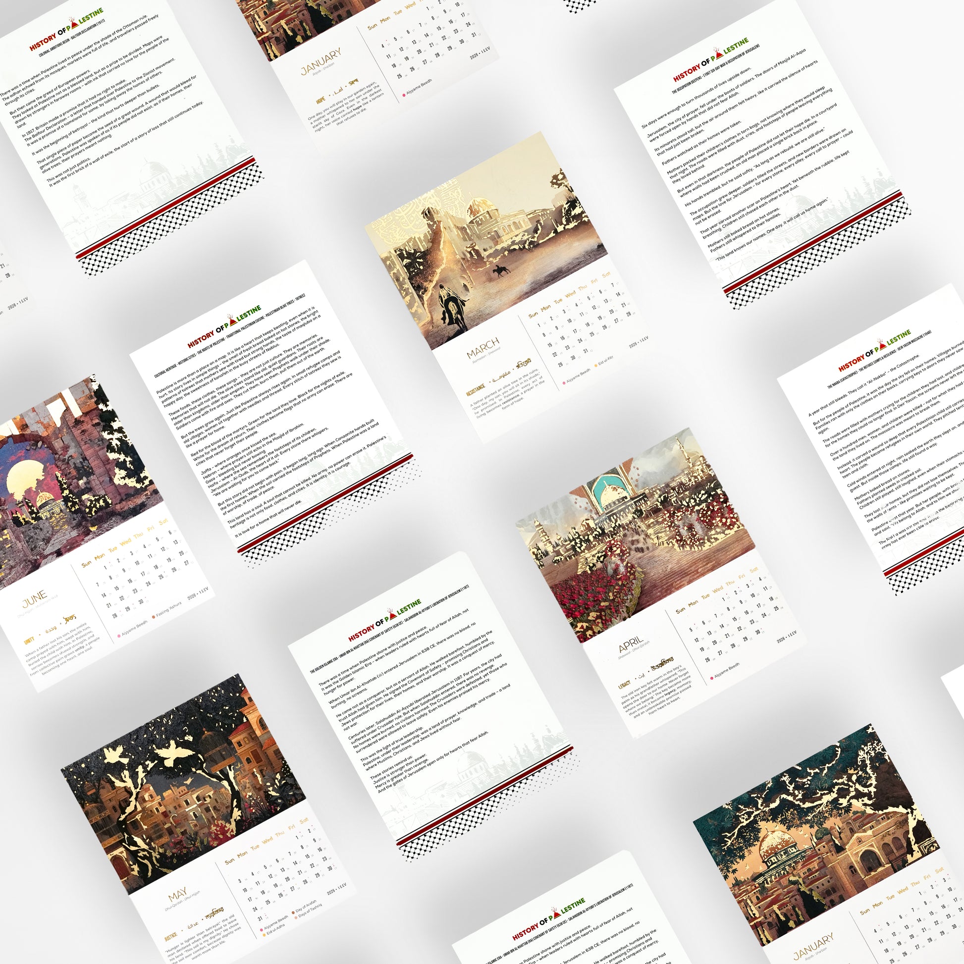The 2026 edition of our Deen Calendar is built on a single, uncompromising promise: to honour the truth of Palestine. Named the Heritage Calendar 2026, this release becomes part of Project PAL—our effort to reclaim stories that have been buried, distorted, or denied.